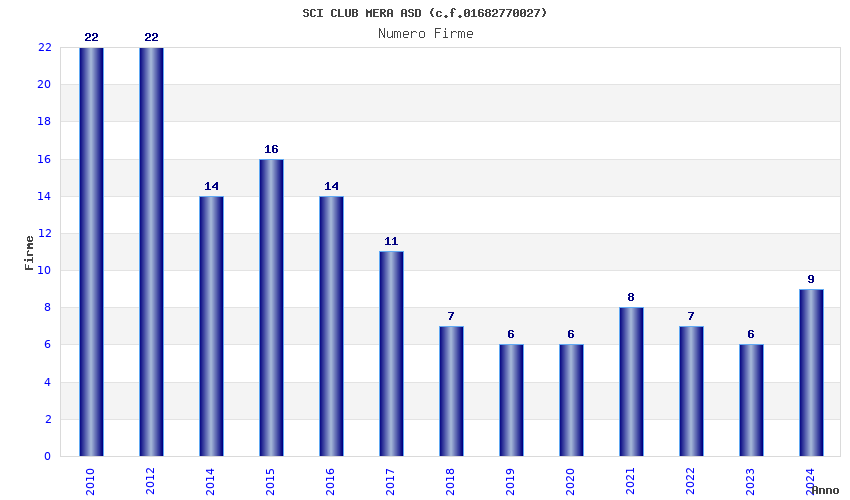 | Anno | Firme | Importi | Media | Naz. | Reg. | Prov. | Comu. |