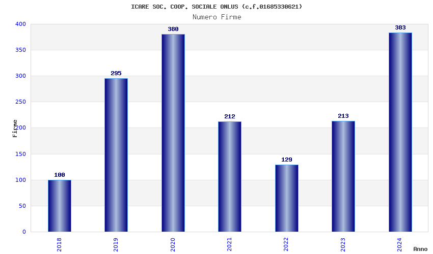 | Anno | Firme | Importi | Media | Naz. | Reg. | Prov. | Comu. |