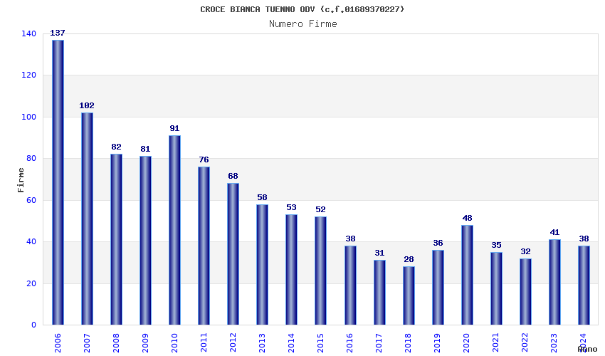 | Anno | Firme | Importi | Media | Naz. | Reg. | Prov. | Comu. |