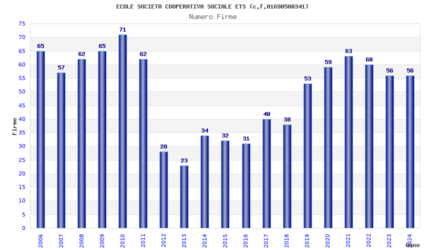 | Anno | Firme | Importi | Media | Naz. | Reg. | Prov. | Comu. |