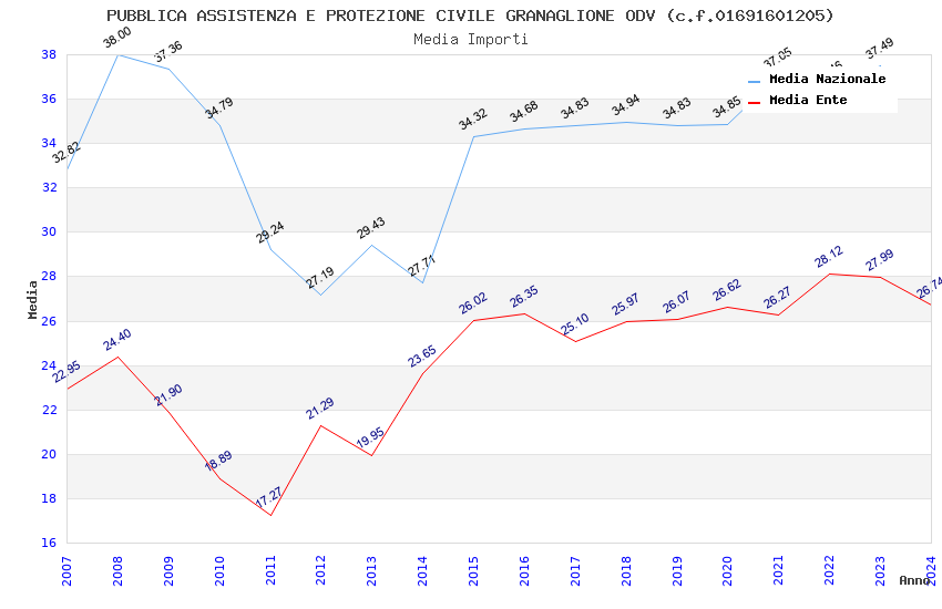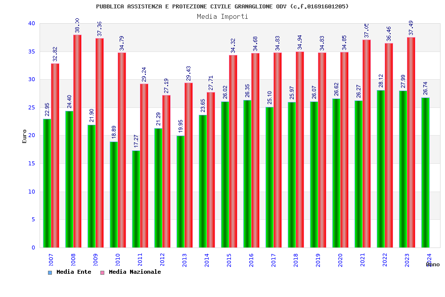 | Anno | Firme | Importi | Media | Naz. | Reg. | Prov. | Comu. |