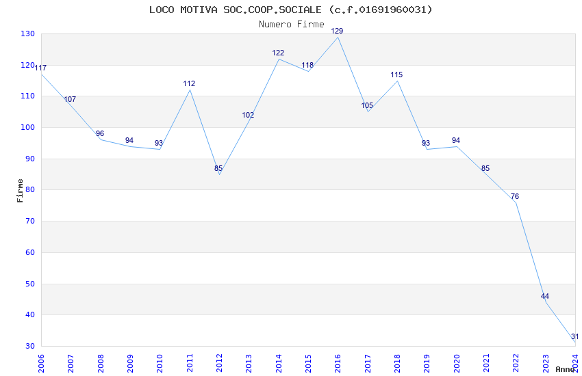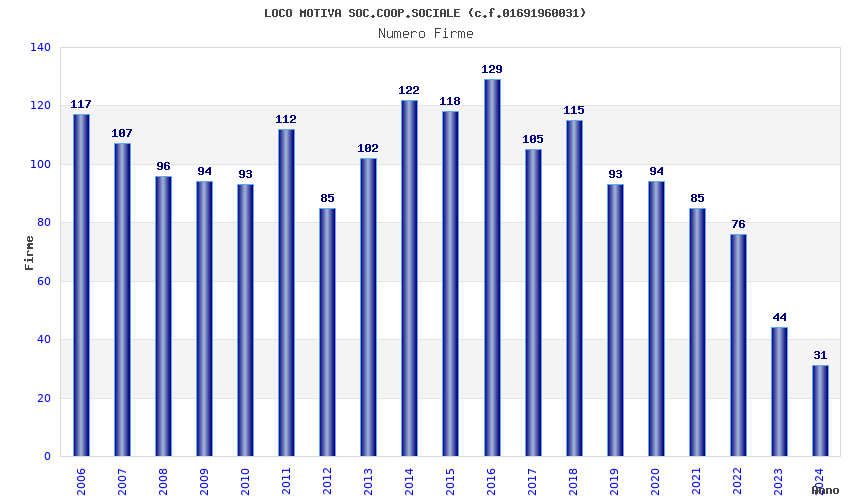 | 2016 | 129 | 5.296,32 | 41,06 | 10.348 | 737 | 59 | 2 |