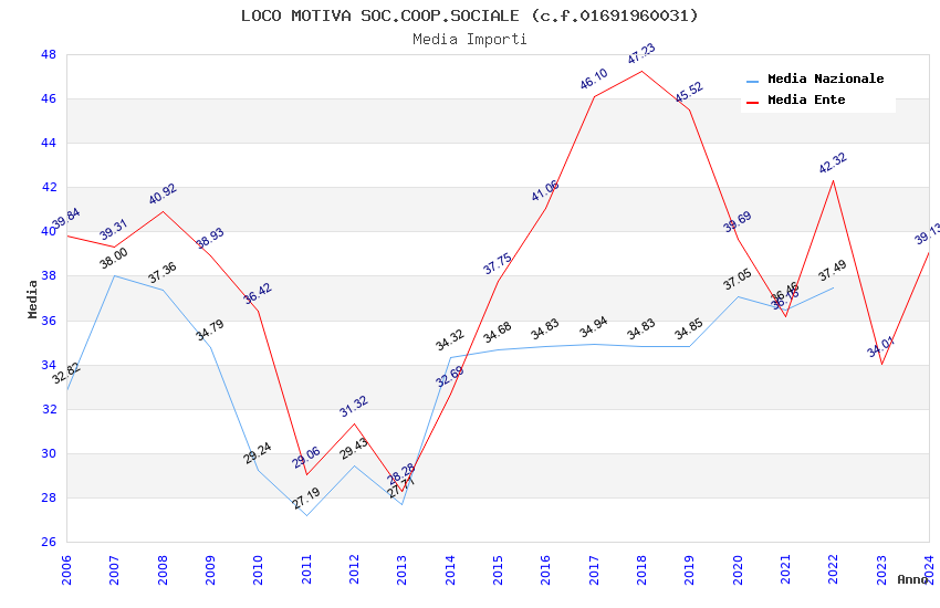 | Anno | Firme | Importi | Media | Naz. | Reg. | Prov. | Comu. |