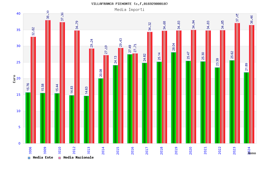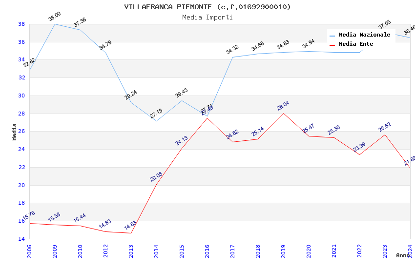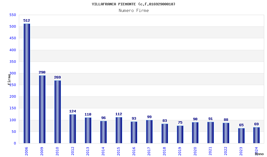 | Anno | Firme | Importi | Media | Naz. | Reg. | Prov. | Comu. |