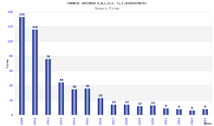| 2009 | 133 | 3.558,98 | 26,76 | 11.468 | 174 | 47 | 18 |