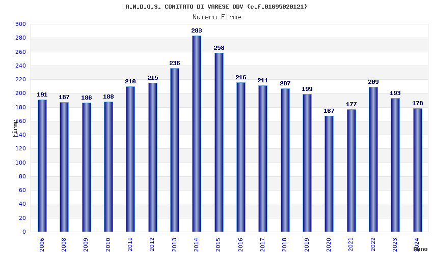 Anno Firme Importi Media Naz. Reg. Prov. Comu.