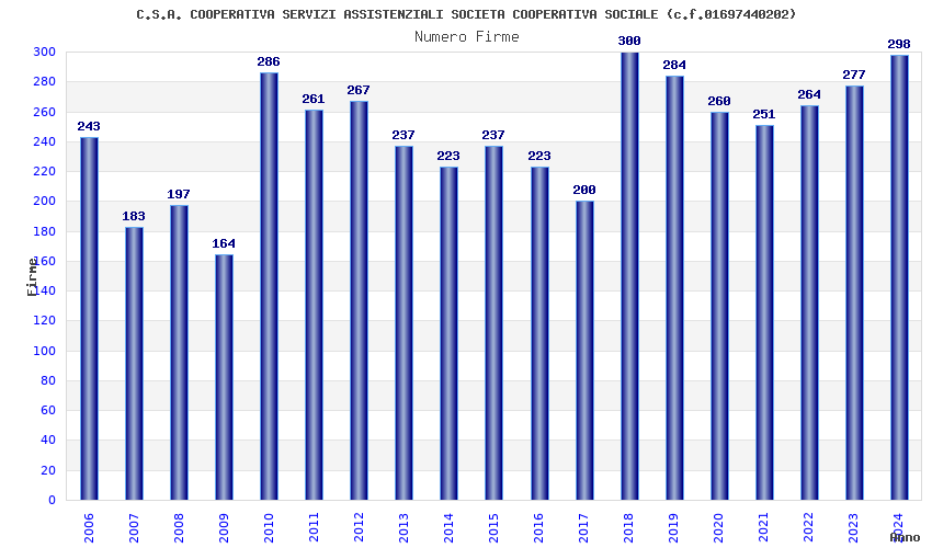 | Anno | Firme | Importi | Media | Naz. | Reg. | Prov. | Comu. |