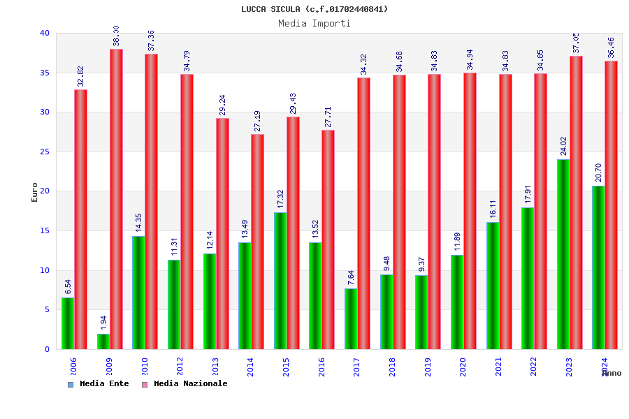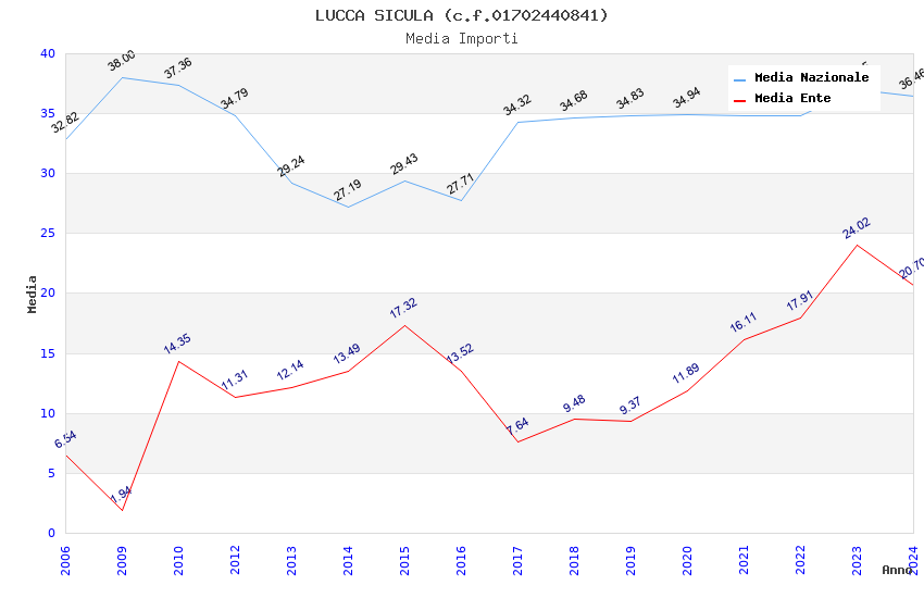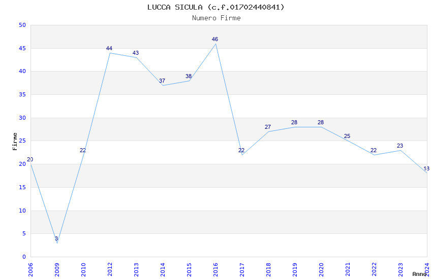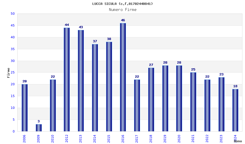 | Anno | Firme | Importi | Media | Naz. | Reg. | Prov. | Comu. |
