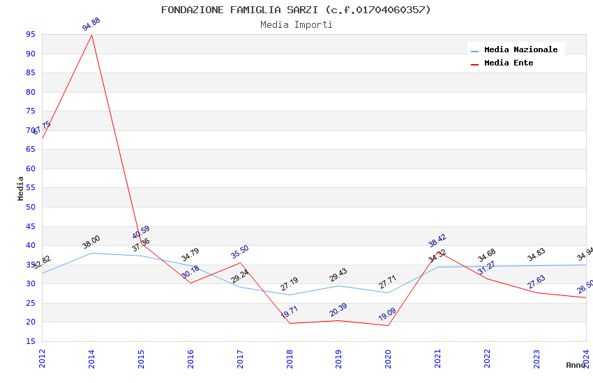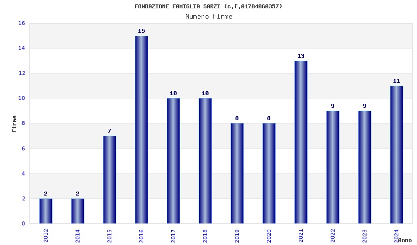 | Anno | Firme | Importi | Media | Naz. | Reg. | Prov. | Comu. |