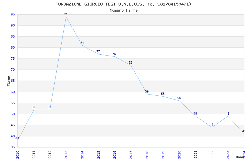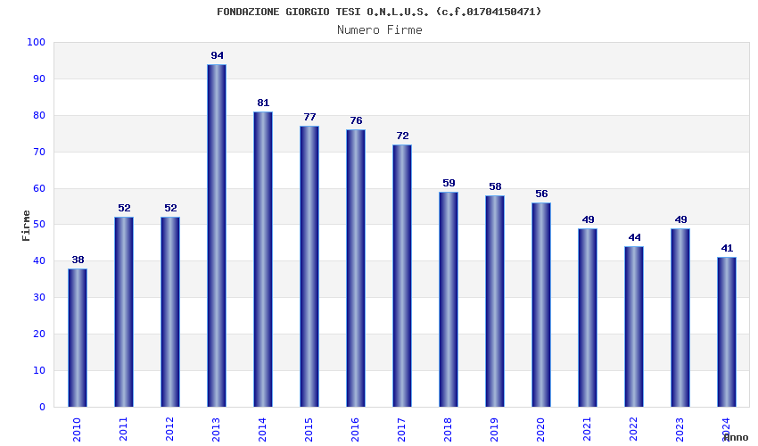 Anno Firme Importi Media Naz. Reg. Prov. Comu.