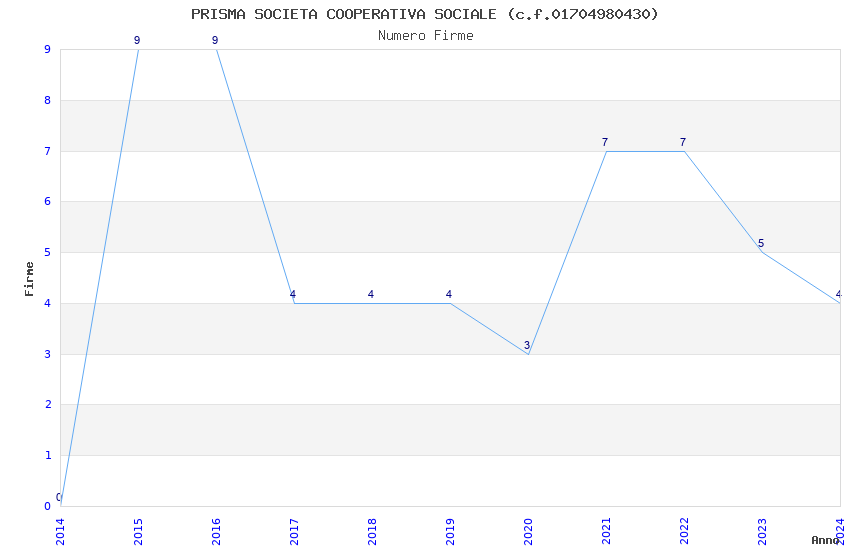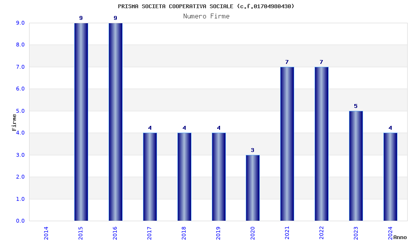 | Anno | Firme | Importi | Media | Naz. | Reg. | Prov. | Comu. |