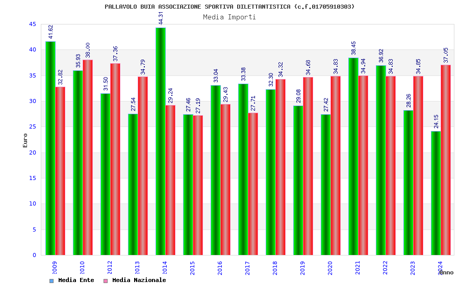 | Anno | Firme | Importi | Media | Naz. | Reg. | Prov. | Comu. |