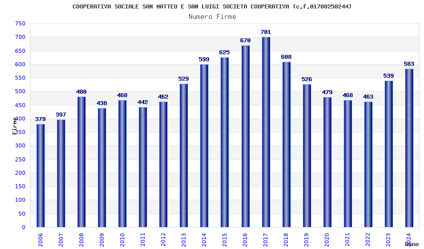| 2017 | 701 | 15.355,57 | 21,91 | 3.070 | 255 | 49 | 1 |