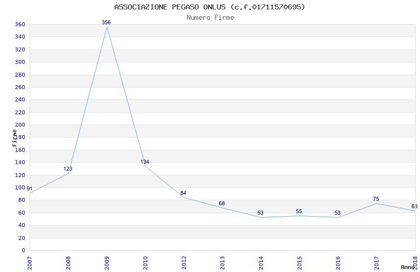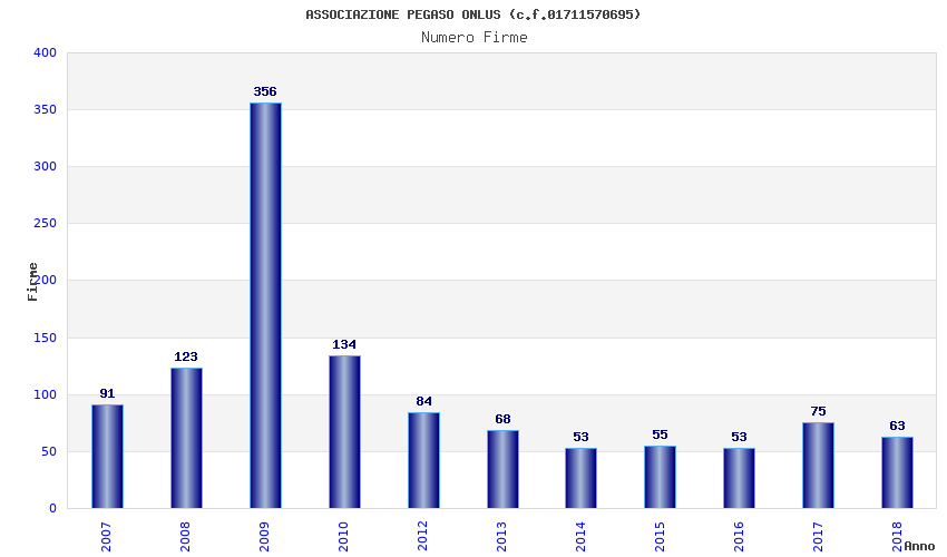 | Anno | Firme | Importi | Media | Naz. | Reg. | Prov. | Comu. |