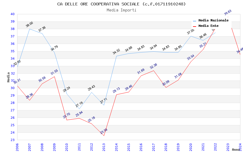 | Anno | Firme | Importi | Media | Naz. | Reg. | Prov. | Comu. |