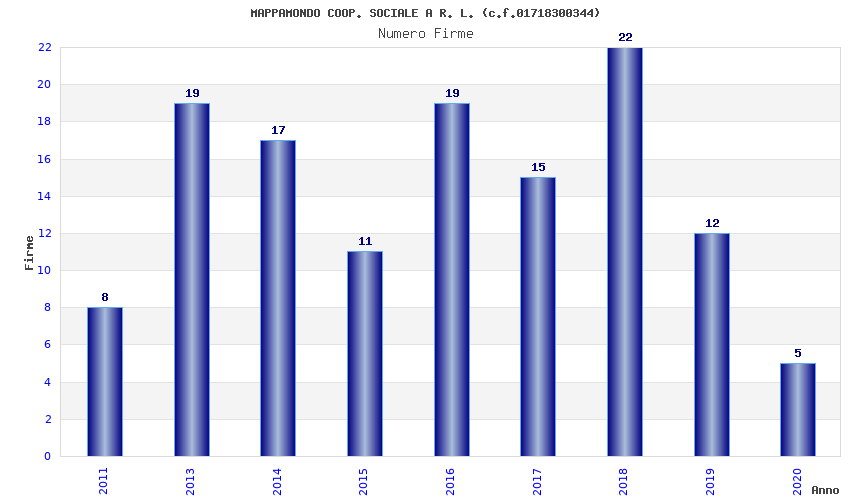 | Anno | Firme | Importi | Media | Naz. | Reg. | Prov. | Comu. |