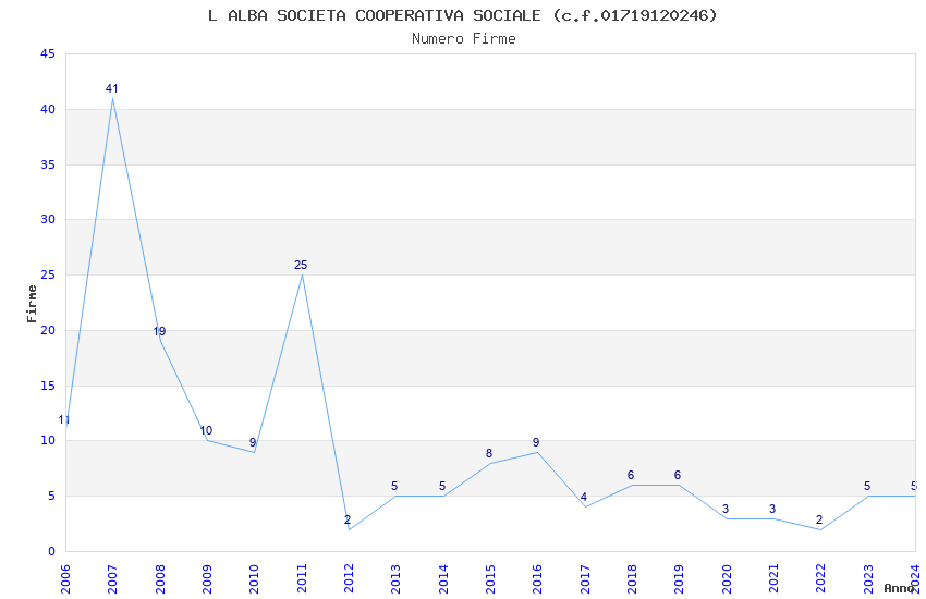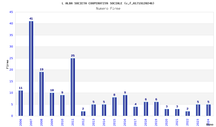 | Anno | Firme | Importi | Media | Naz. | Reg. | Prov. | Comu. |