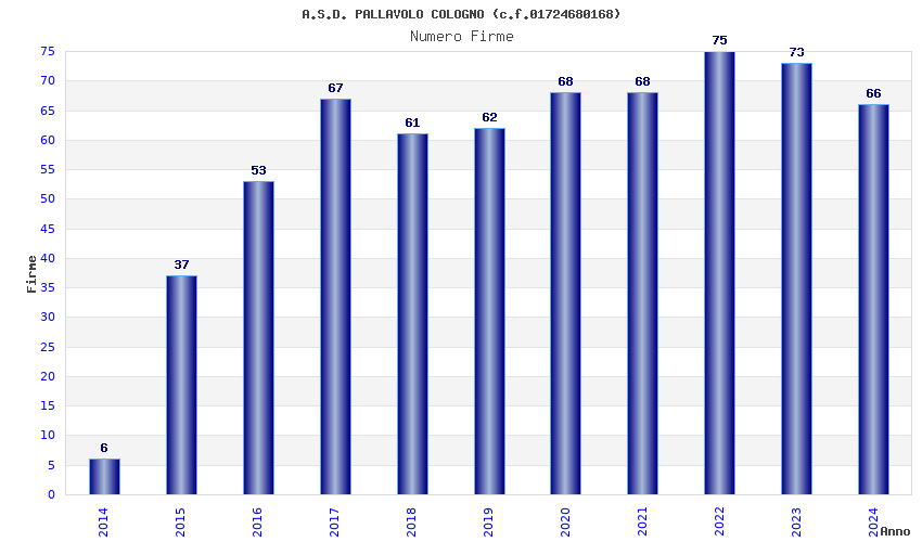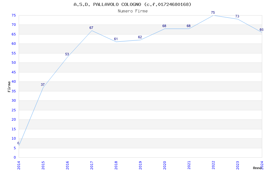 | 2023 | 73 | 2.544,84 | 34,86 | 19.706 | 4.250 | 457 | 4 |