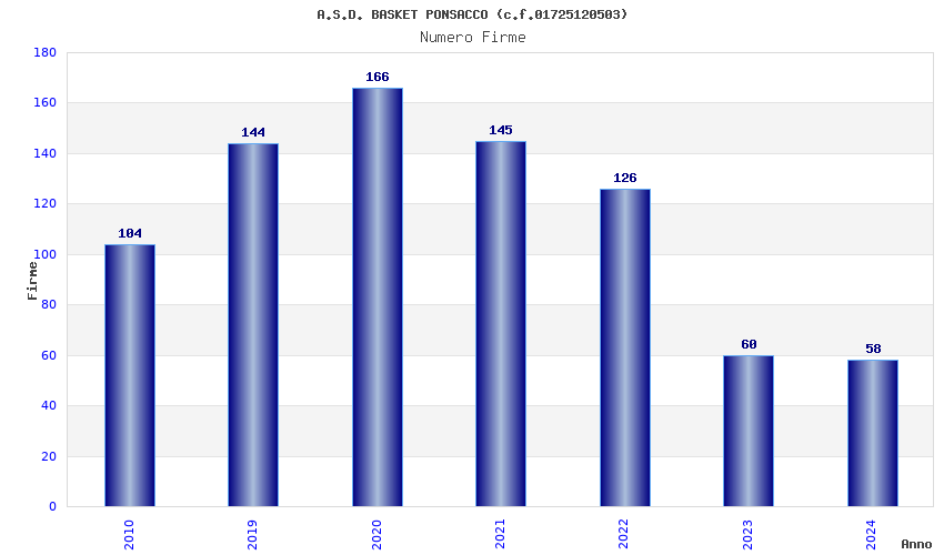 | Anno | Firme | Importi | Media | Naz. | Reg. | Prov. | Comu. |