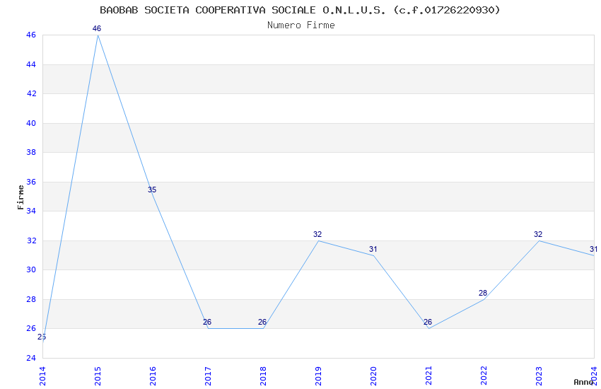 | 2015 | 46 | 1.144,92 | 24,89 | 29.613 | 790 | 168 | 54 |