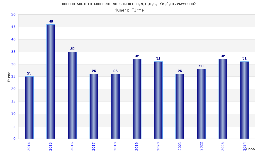 | Anno | Firme | Importi | Media | Naz. | Reg. | Prov. | Comu. |