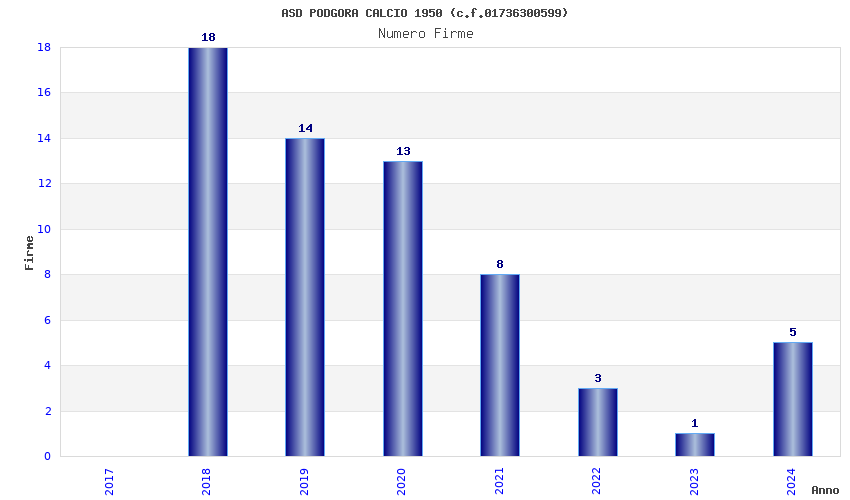 | Anno | Firme | Importi | Media | Naz. | Reg. | Prov. | Comu. |