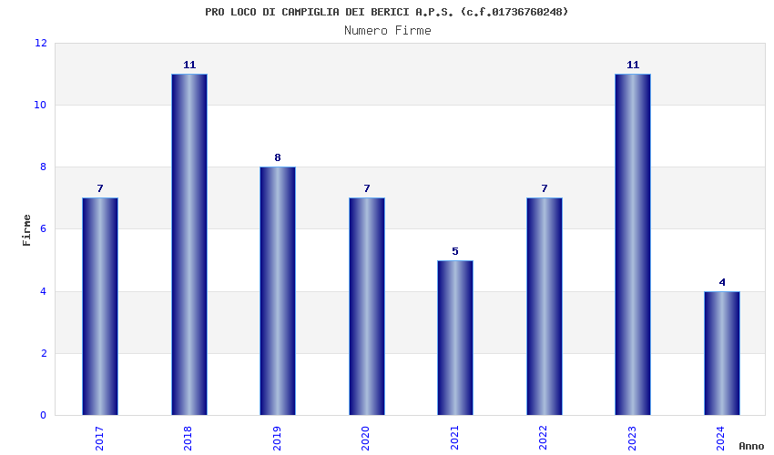 | Anno | Firme | Importi | Media | Naz. | Reg. | Prov. | Comu. |