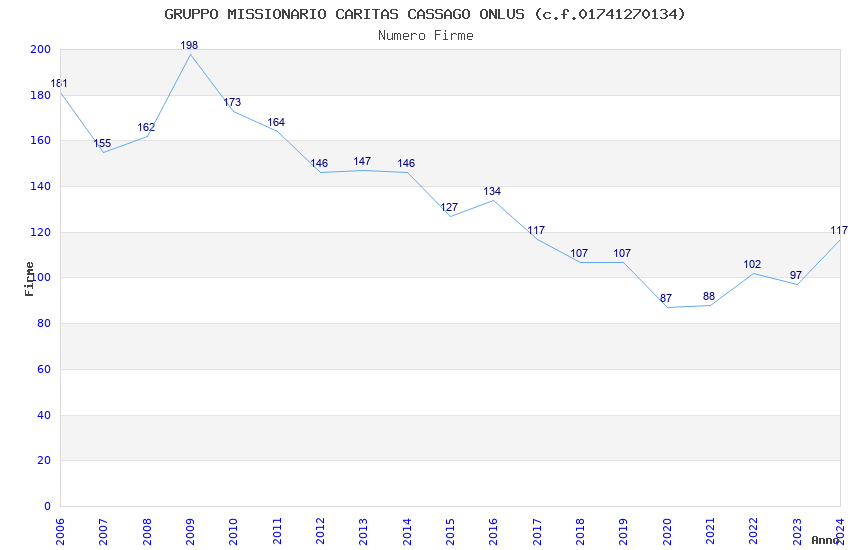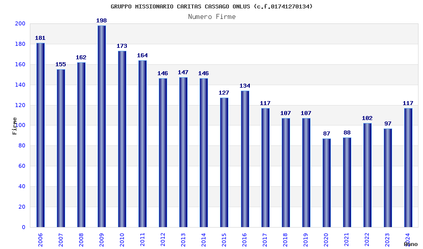 | Anno | Firme | Importi | Media | Naz. | Reg. | Prov. | Comu. |