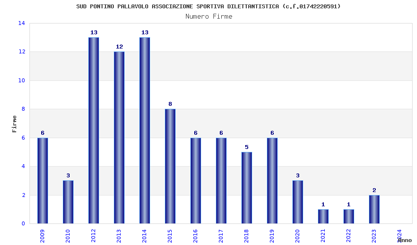 | 2012 | 13 | 322,75 | 24,83 | 37.518 | 3.152 | 201 | 22 |