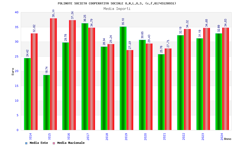 | Anno | Firme | Importi | Media | Naz. | Reg. | Prov. | Comu. |
