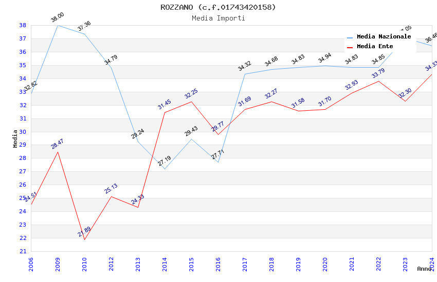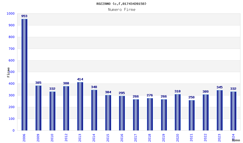 | Anno | Firme | Importi | Media | Naz. | Reg. | Prov. | Comu. |