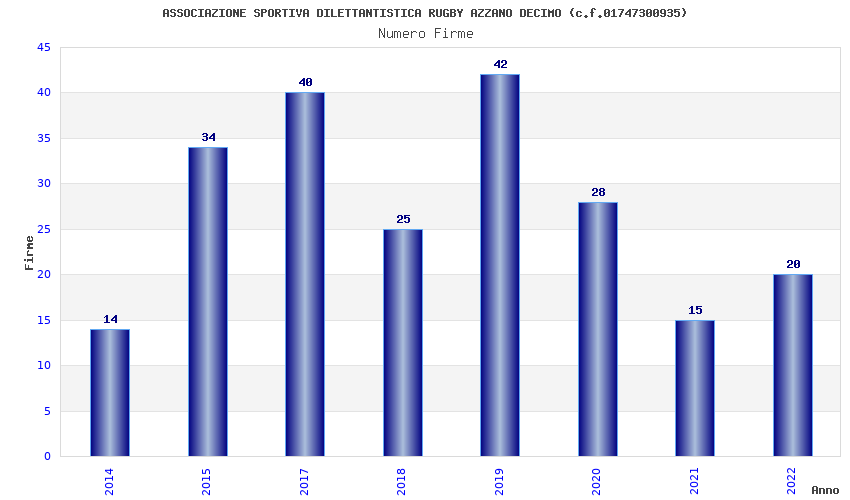| Anno | Firme | Importi | Media | Naz. | Reg. | Prov. | Comu. |