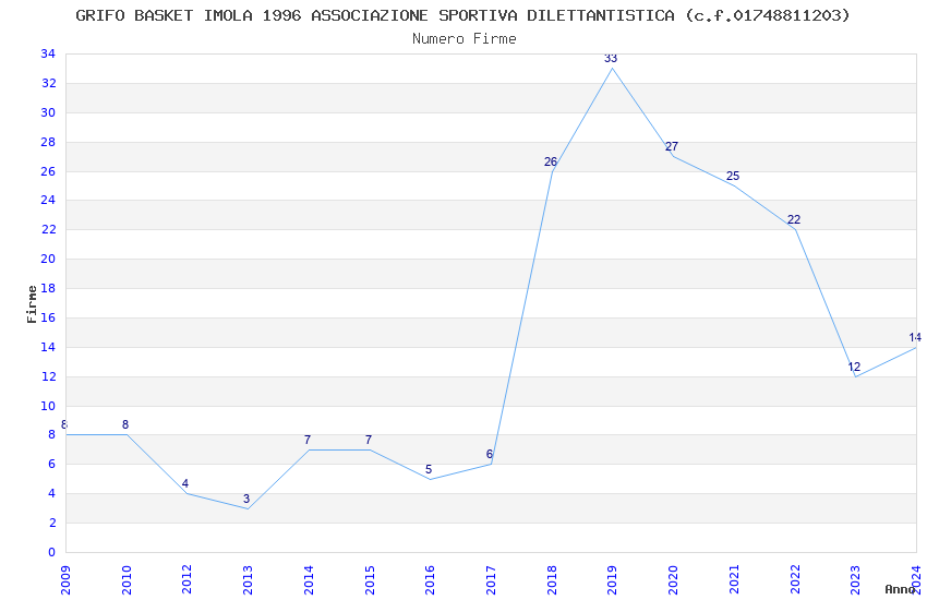 | 2019 | 33 | 1.521,00 | 46,09 | 28.564 | 2.527 | 623 | 52 |
