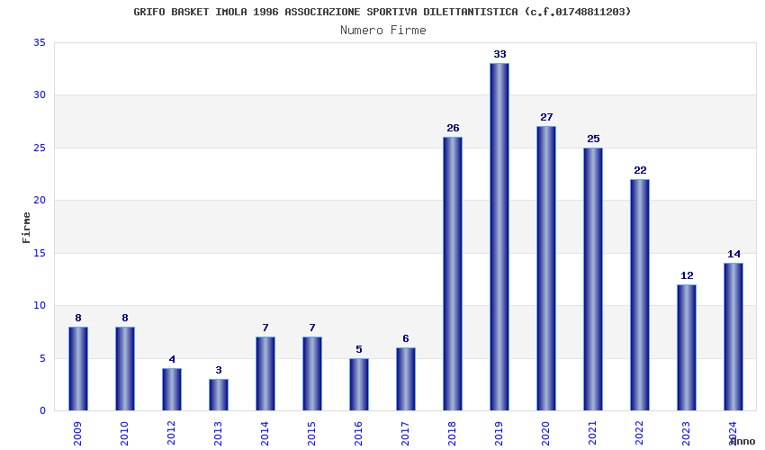 | Anno | Firme | Importi | Media | Naz. | Reg. | Prov. | Comu. |