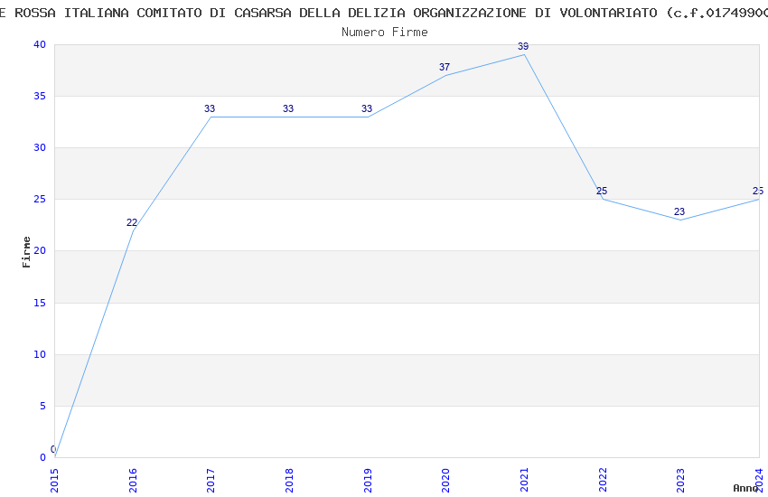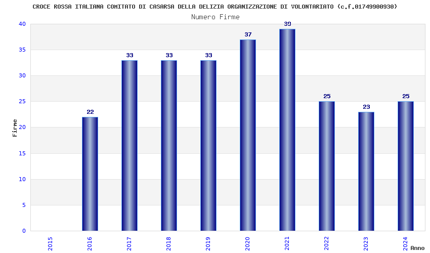| Anno | Firme | Importi | Media | Naz. | Reg. | Prov. | Comu. |