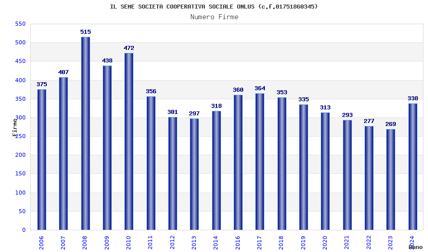 | Anno | Firme | Importi | Media | Naz. | Reg. | Prov. | Comu. |