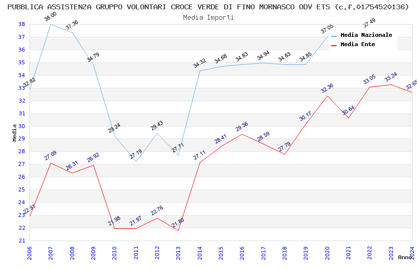 | Anno | Firme | Importi | Media | Naz. | Reg. | Prov. | Comu. |
