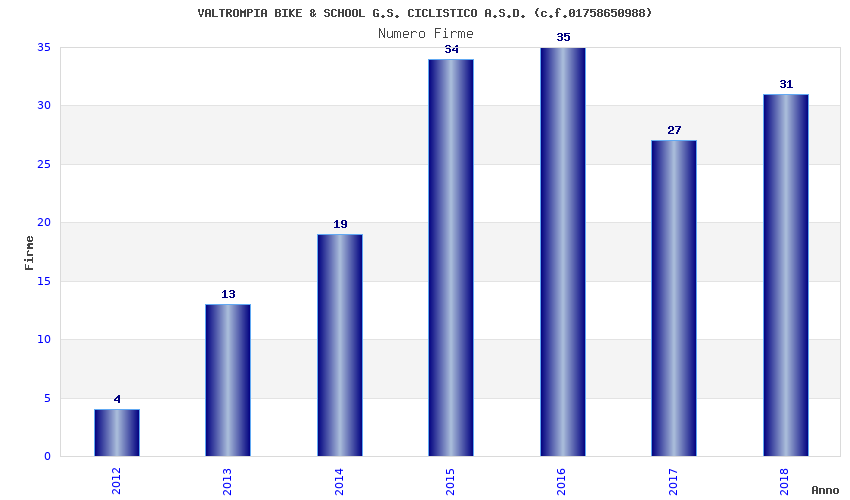| Anno | Firme | Importi | Media | Naz. | Reg. | Prov. | Comu. |