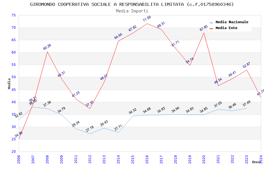 | Anno | Firme | Importi | Media | Naz. | Reg. | Prov. | Comu. |