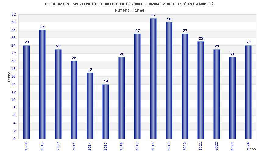 | Anno | Firme | Importi | Media | Naz. | Reg. | Prov. | Comu. |