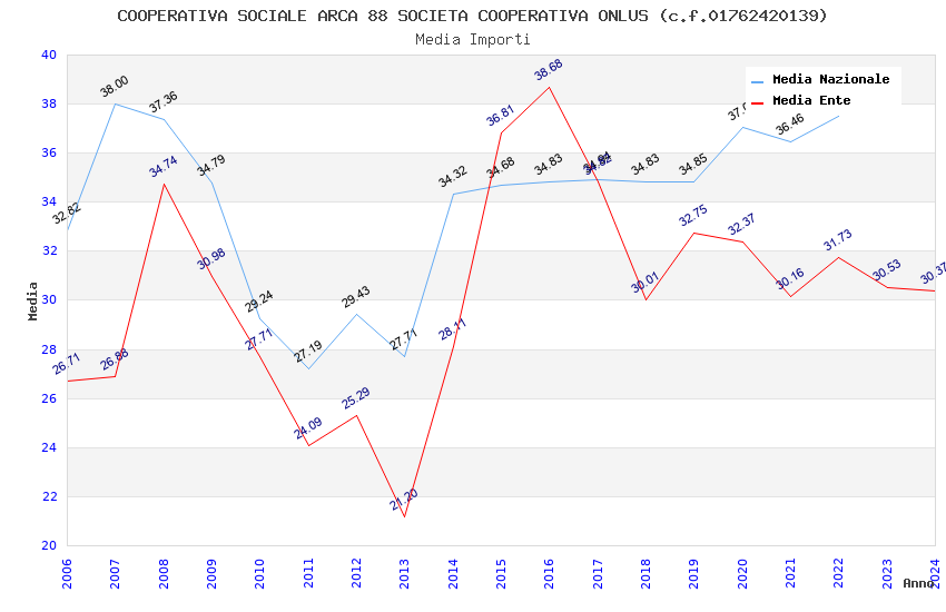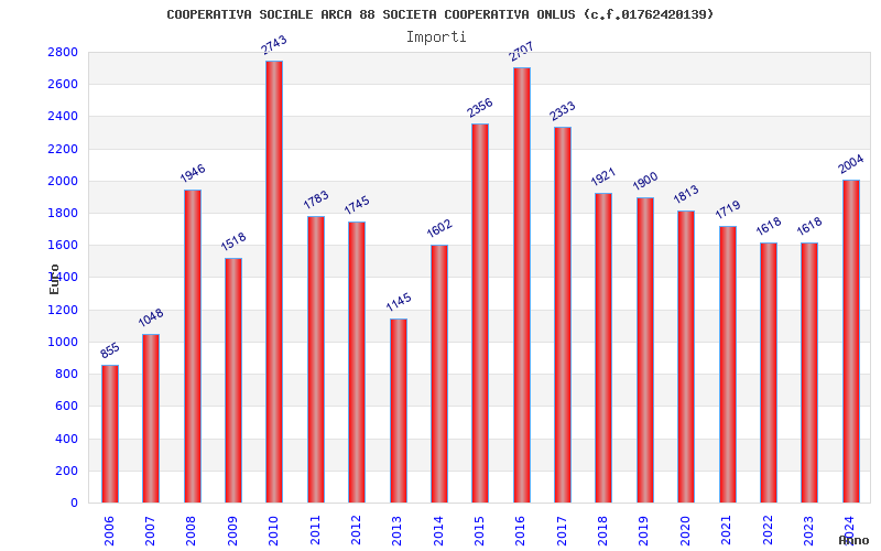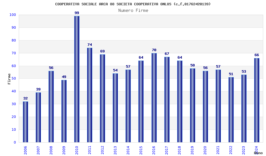 | Anno | Firme | Importi | Media | Naz. | Reg. | Prov. | Comu. |