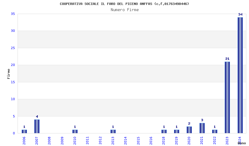 | Anno | Firme | Importi | Media | Naz. | Reg. | Prov. | Comu. |