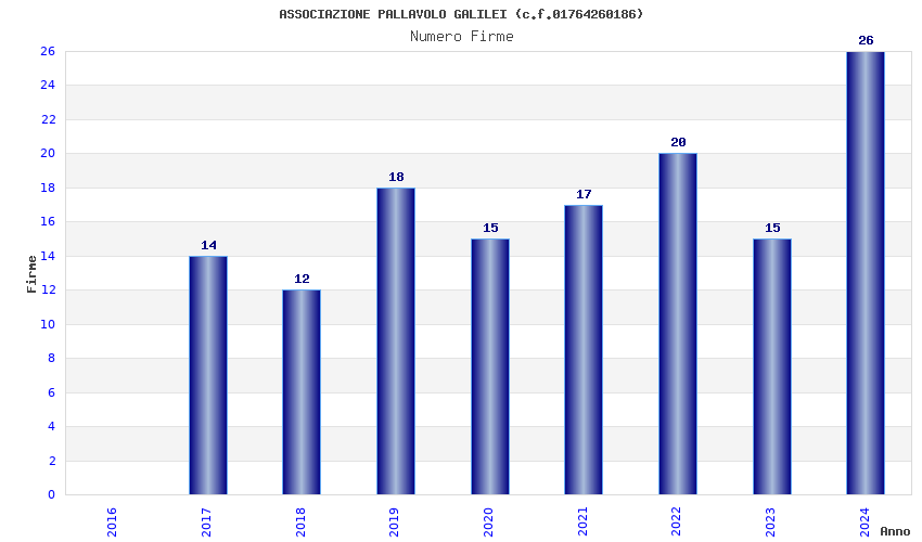 | 2017 | 14 | 369,00 | 26,36 | 47.361 | 9.764 | 542 | 28 |