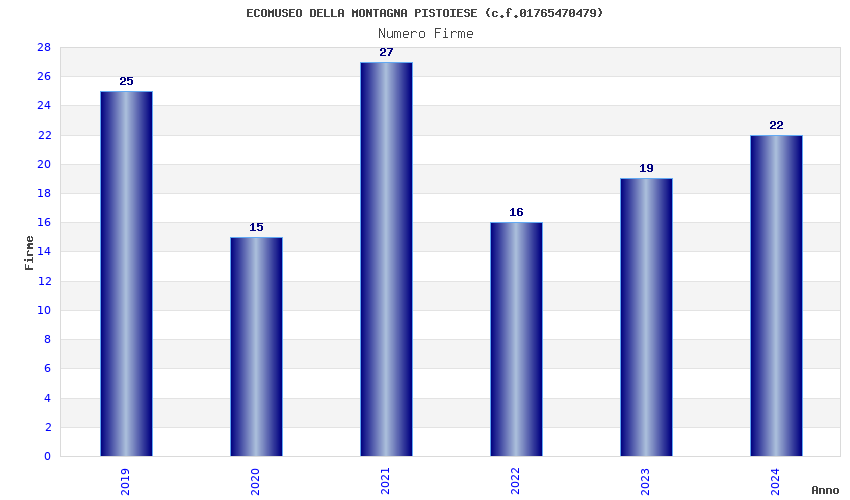 | 2019 | 25 | 2.210,31 | 88,41 | 22.405 | 1.355 | 81 | 5 |