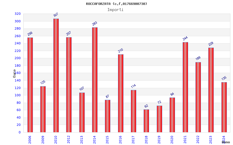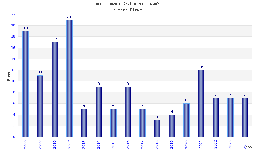 | Anno | Firme | Importi | Media | Naz. | Reg. | Prov. | Comu. |