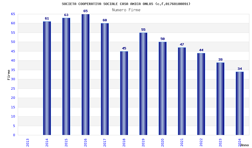 | Anno | Firme | Importi | Media | Naz. | Reg. | Prov. | Comu. |
