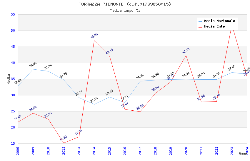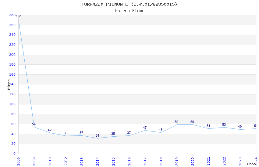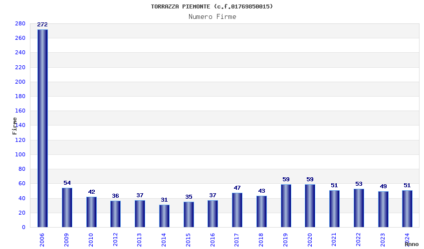 | Anno | Firme | Importi | Media | Naz. | Reg. | Prov. | Comu. |