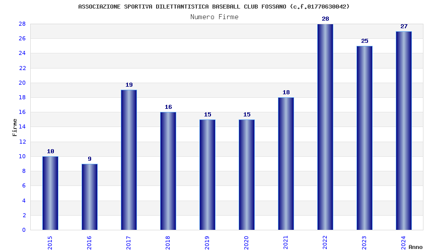 | Anno | Firme | Importi | Media | Naz. | Reg. | Prov. | Comu. |