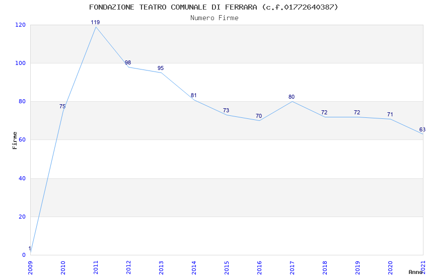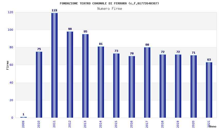 | Anno | Firme | Importi | Media | Naz. | Reg. | Prov. | Comu. |