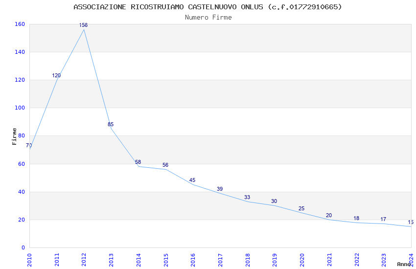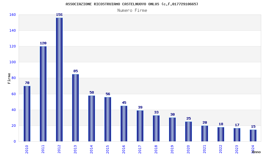 | Anno | Firme | Importi | Media | Naz. | Reg. | Prov. | Comu. |